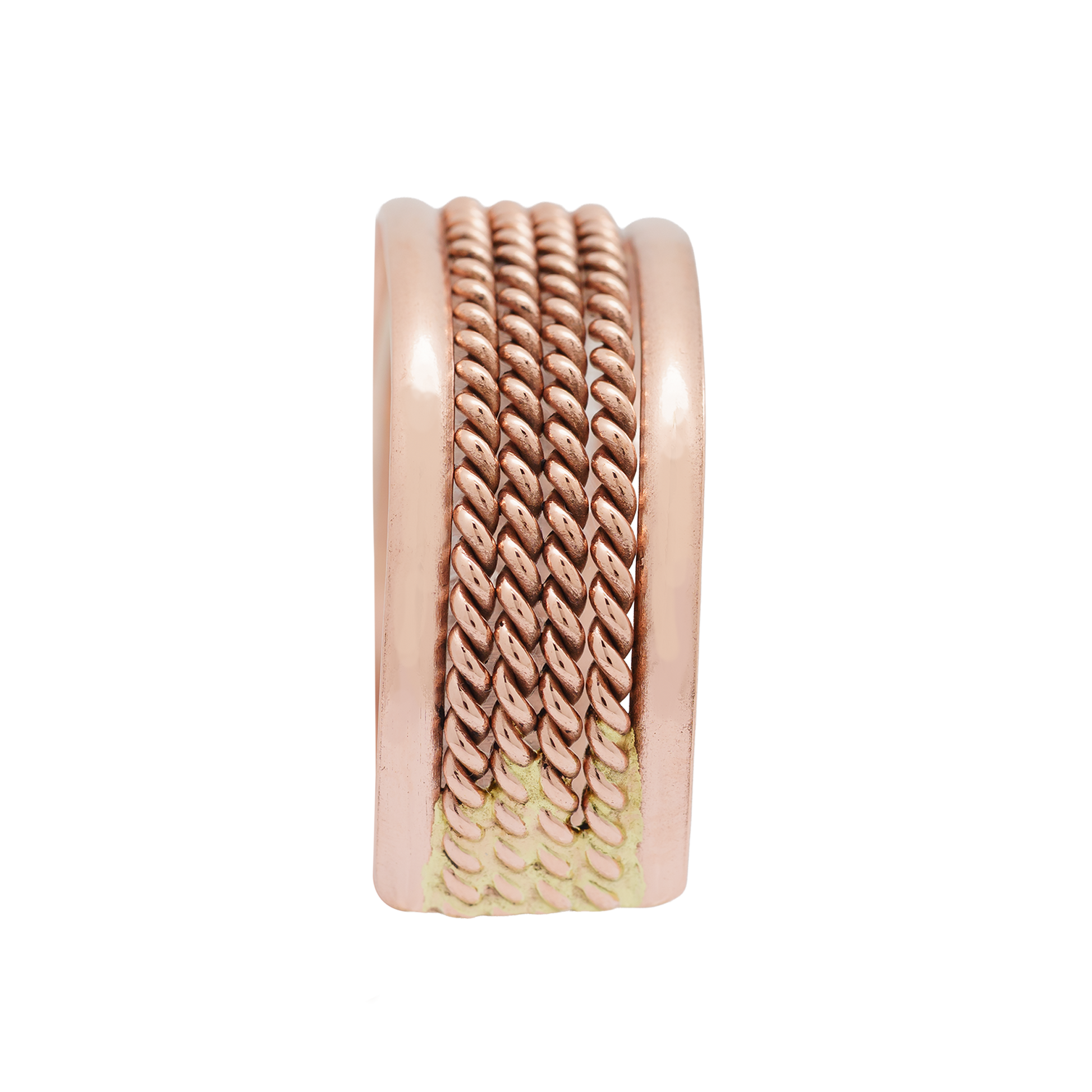 Copper spirals twist and turn for a fantastic looking design. This thick cuff is substantial and has a bold presence. Each Copper Bracelet is a carefully handwoven blend of our Pure, Yellow, and White Coppers. This trinity is there not only to elevate the style, but also to ensure the comfort and quality of having as much copper as possible. This is especially helpful if you are drawn towards The Healing Benefits of Copper, as many metals absorb easier into the body through the skin. Let copper help you conduct yourself with the grace and strength of this ancient metal.