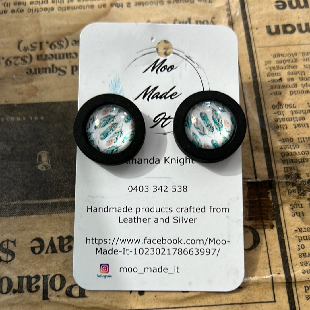 Feather & timber stud earrings - M014