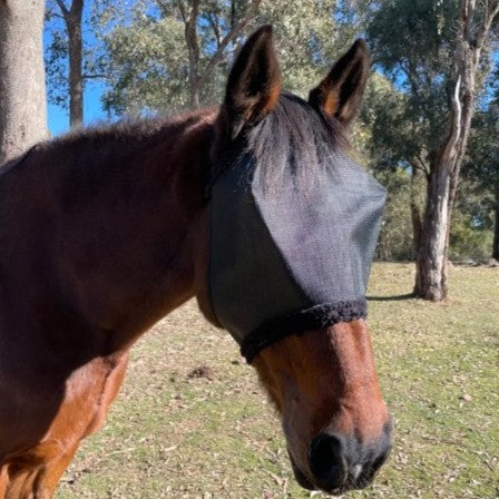 Fur Flyveil with soft fur lining top and bottom of the mask is designed for effective protection from insects and the sun at a cost-effective price suitable for all horse and pony owners.